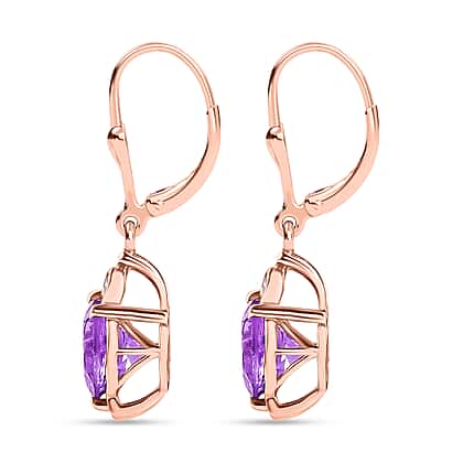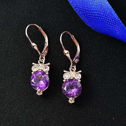 D'Joy Rose De France Amethyst & White Zircon Living Creature Earring with Lever Back in Rose Gold Plated Sterling Silver 3.74 Ct.