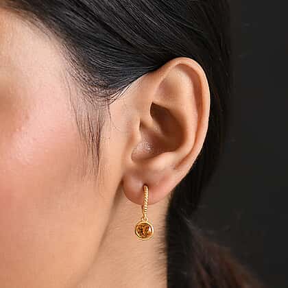 D'Joy Serra Gaucha Citrine Dangling Earring in Yellow Gold Plated Sterling Silver 1.54 Ct.