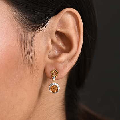 Earrings with fanciful shapes are sure to turn heads, like this D'Joy Serra Gaucha citrine and white zircon earrings. It features earrings glowing Serra Gaucha citrine that drops gently from a sculpted floral inspired gold tone top, creating a soft, feminine silhouette. The citrine sits in a delicate halo of white zircon, adding a touch of sparkle that feels refined rather than loud. Lightweight and easy to wear, these earrings move beautifully and light up the face with a sunset like glow.They are perfect for women who love jewellery with a polished yet playful mood.