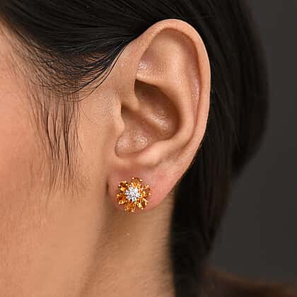 D'Joy Serra Gaucha Citrine & White Zircon Floral Earring with Push Back in Yellow Gold Plated Sterling Silver 2.06 Ct.