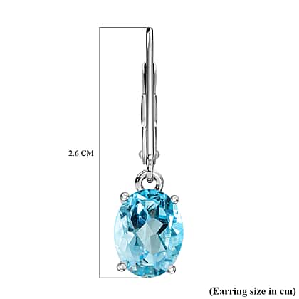 D'Joy Sky Blue Topaz Lever Back Earrings Rhodium in Sterling Silver 4.00 Ct.