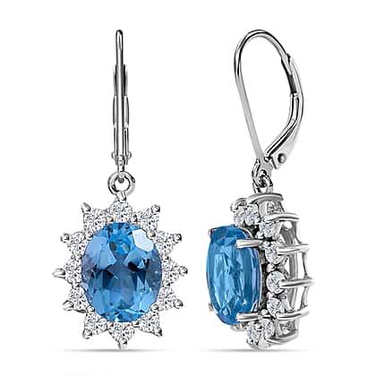 D'Joy Skyblue Blue Topaz & Natural Zircon Lever Back Earrings in Rhodium Overlay Sterling Silver 8.11 Ct.