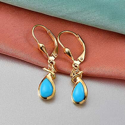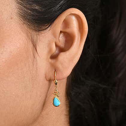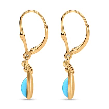 D'Joy Sleeping Beauty Turquoise Dangling Earring with Lever Back in Yellow Gold Plated Sterling Silver 1.41 Ct.