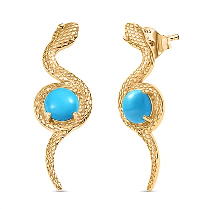 D'Joy Sleeping Beauty Turquoise Living Creature Earring with Push Back in 18K Yellow Gold Plating Sterling Silver 2.20 Ct.
