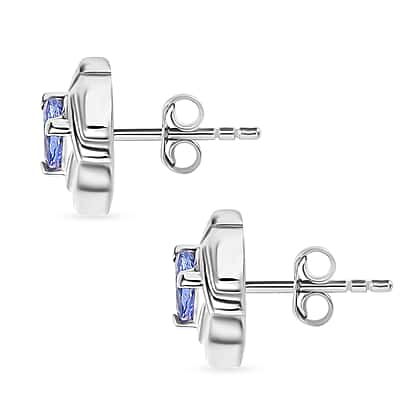 D'Joy Tanzanite Solitaire Stud Push Post Earring in Platinum Overlay Sterling Silver
