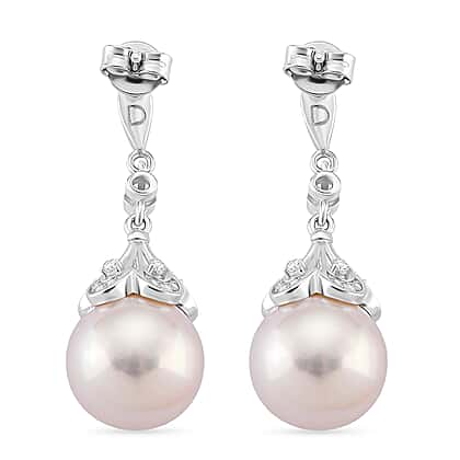 Shaped with a soft, romantic feel, these white Edison pearl dangling earrings bring a fresh glow to everyday style. The earrings feature a lustrous Edison pearl—highly valued for its rare size, smooth surface, and beautiful natural blush tone. Each pearl sits beneath sparkling white zircons, chosen for their bright fire and durability. The rhodium-overlay sterling silver setting is hypoallergenic, tarnish-resistant, and comfortable for sensitive skin, while the subtle drop shape adds movement that feels effortlessly flattering.
