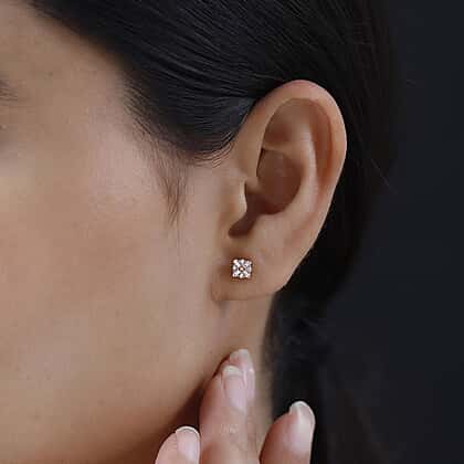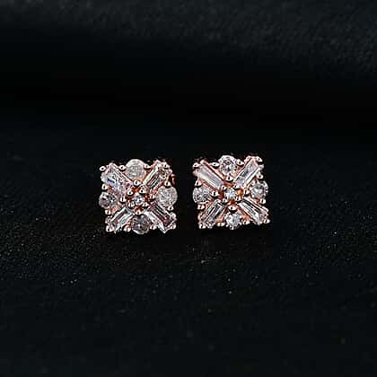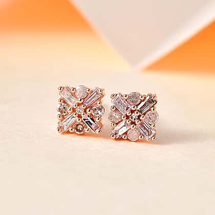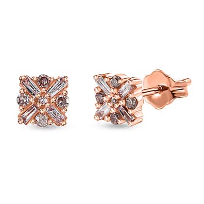 9K Rose Gold I3 Pink Diamond Cluster Stud Push Post Earring 0.25 ct, Gold Wt. 0.72 Gms