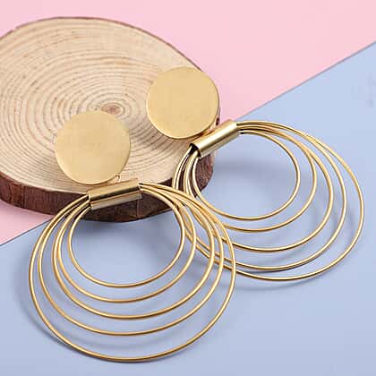 Concentric Circle Drop Earrings in Yellow Gold Tone