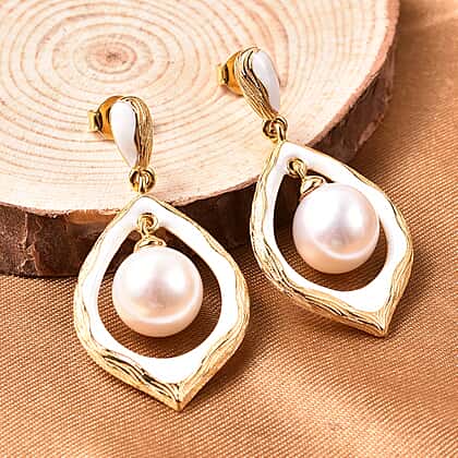 Edison Pearl Drop Earrings in Yellow Gold Overlay Sterling Silver