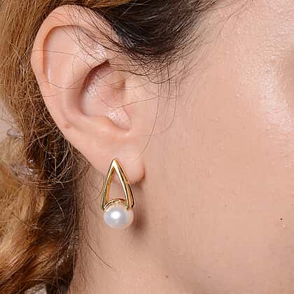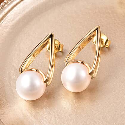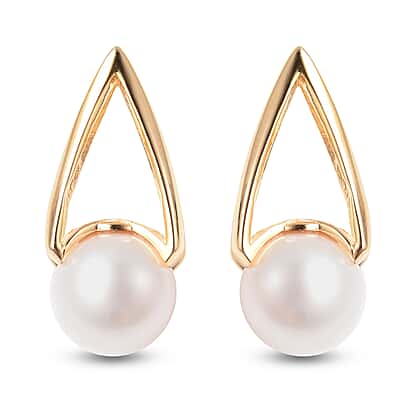 Edison Pearl Earrings (with Push Back) in Yellow Gold Overlay Sterling Silver
