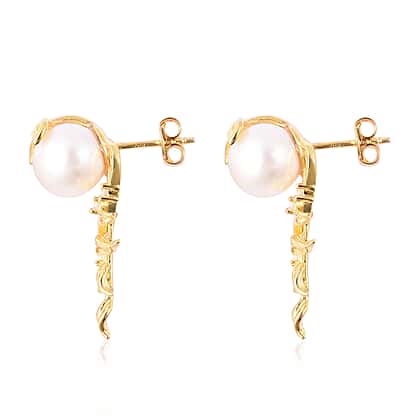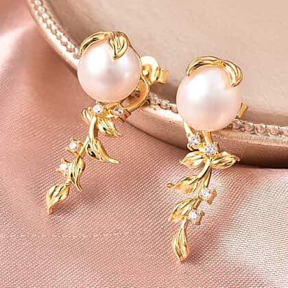 Edison Pearl & Natural Cambodian Zircon Earrings with Push Back in Yellow Gold Plated Sterling Silver 16.42 Ct.