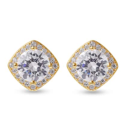 ELANZA Simulated Diamond Halo Stud Earrings in Yellow Gold Plated Sterling Silver