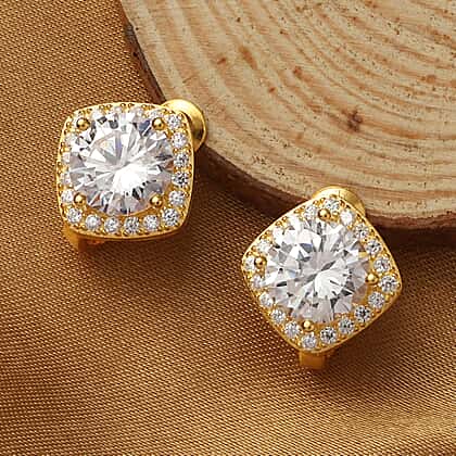 ELANZA Simulated Diamond Stud Earrings (With French Clip) in Yellow Gold Overlay Sterling Silver