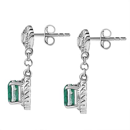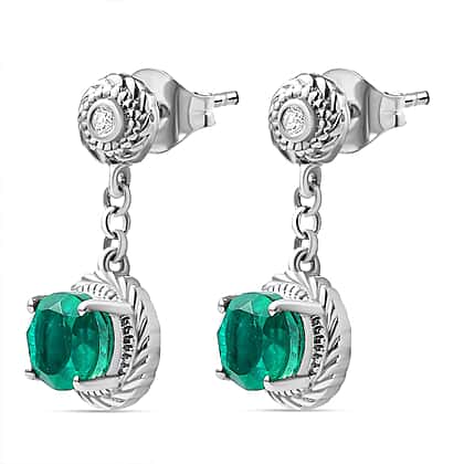 Emeraldine Triplet Quartz, White Zircon Dangle Earrings in Rhodium Plated Sterling Silver 3.546 Ct.