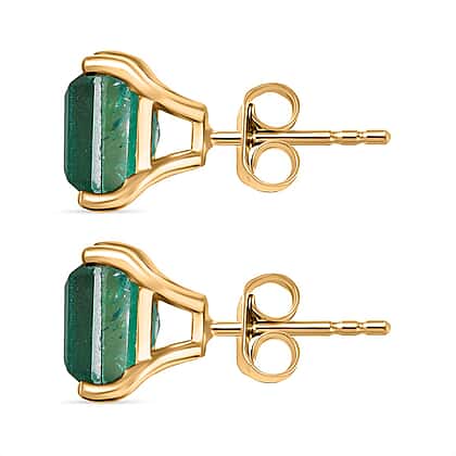 Emeraldine Triplet Quartz Solitaire Stud Push Post Earring in 14K Gold Overlay Sterling Silver 6.07 Ct.