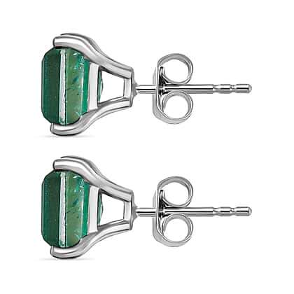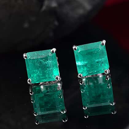 Emeraldine Triplet Quartz Solitaire Stud Push Post Earring in Platinum Overlay Sterling Silver 6.07 Ct.