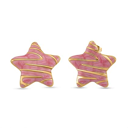 Celestial-inspired jewellery makes for a versatile addition to any look. Like these pink enamel star earrings. Crafted in stainless steel, glittering with playful patterns, these earrings are a pure joy. Sculpted in bold star silhouettes, these studs feature swirling, candy-pink enamel and delicate gold accent that turn classic celestial motifs into modern, chic pieces.The design is perfect for stargazers and can also remind you of the joy of counting the stars and falling to sleep.These earrings can symbolise hope and inspire the wearer to shine bright even amidst of darkness.