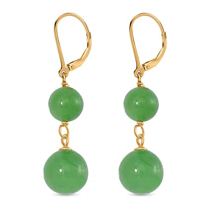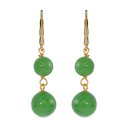 Enhanced Green Jade Earring with Lever Back in Yellow Gold Plated Sterling Silver 23.00 Ct.