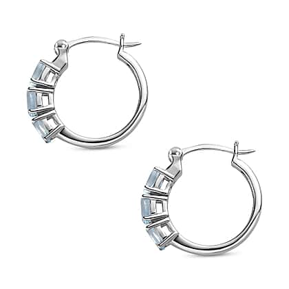 Espirito Santo Aquamarine Hoop Earrings in Platinum Overlay Sterling Silver 1.32 Ct