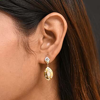 Ethiopian Faceted Opal & White Zircon Earring with Push Back in 18K Vermeil Yellow Gold Plated Sterling Silver 1.19 Ct.