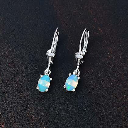 Ethiopian Opal Solitaire Lever Back Earring in Platinum Overlay Sterling Silver