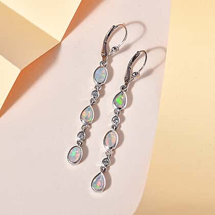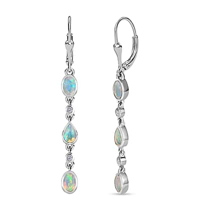 Ethiopian Welo Opal and Natural Zircon Dangle Earrings in Platinum Overlay Sterling Silver 1.80 Ct.