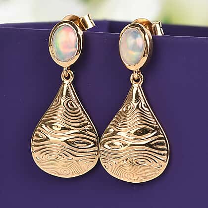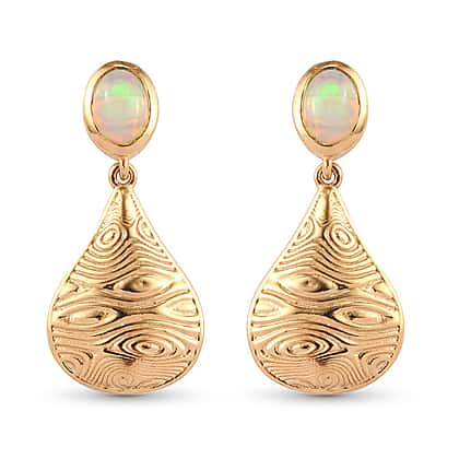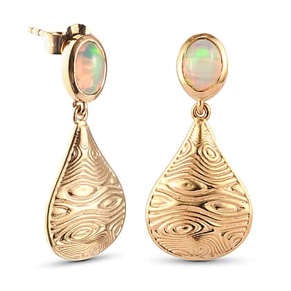 Sundays Child 1.02 Ct. Ethiopian Opal Dangle Earrings in Gold Plated Sterling Silver