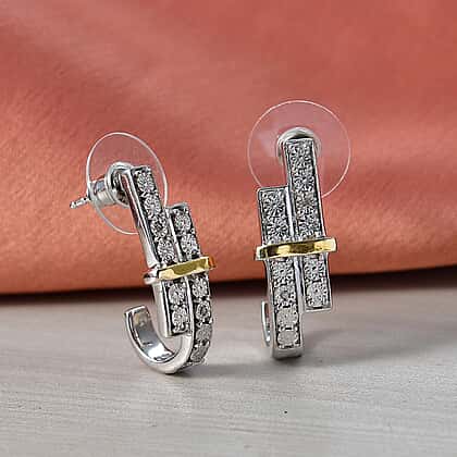 EverTrue - White Diamond J Hoop Earring with Push Back in Yellow Plating