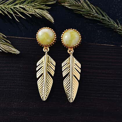 Designed to capture a touch of earthy beauty, these earrings feature striking Connemara marble stones. The design features a smooth, round marble stud with a detailed feather drop, symbolising individuality and freedom. The beautifully carved feather drop creates a look that blends earthy tones with refined detailing. Crafted in pure yellow brass, this earring ensures durability and enduring shine. The textured finish adds beauty and movement, while the push-back closure clasp ensures comfort throughout the day. Perfect for adding a graceful charm to both everyday outfits and special occasions.