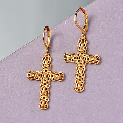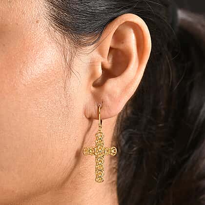 EverTrue Cross Earring with Lever Back in Yellow Gold Tone