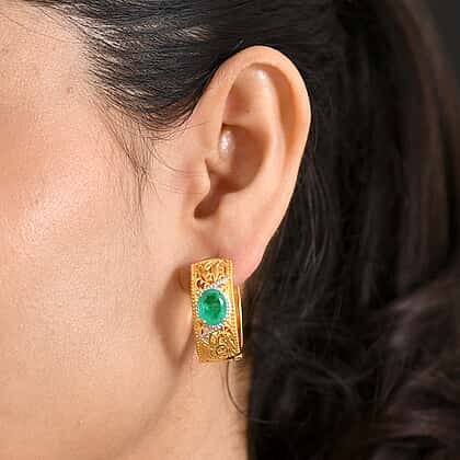 Immerse yourself in an ornate hoop design where emeraldine tones and intricate metalwork take centre stage. Finished in a striking two-tone combination of platinum overlay and gold, these full hoop earrings feature a detailed filigree pattern that adds depth and texture throughout the surface. At the heart of each hoop sits an emeraldine triplet quartz, bringing rich green colour and visual focus to the design. The structured silhouette feels bold yet balanced on the ear, while the hinged hoop fastening ensures secure and comfortable wear. Carefully crafted and visually distinctive, these earrings offer a strong design statement with a refined finish.
