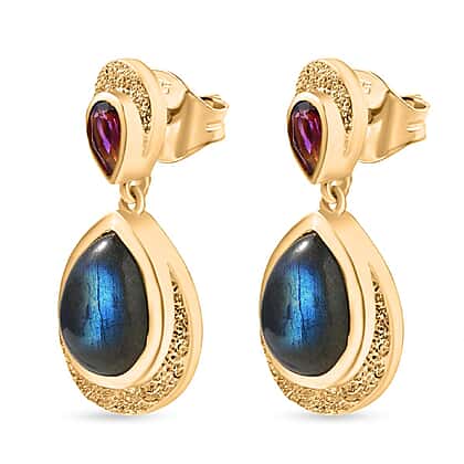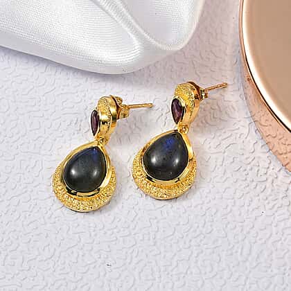 EverTrue Labradorite & African Amethyst Dangling Earring in Yellow Gold Plated 10.04 Ct.