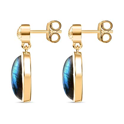 EverTrue Labradorite Solitaire Stud Push Post Earring in Yellow Gold Plated 10.52 Ct.