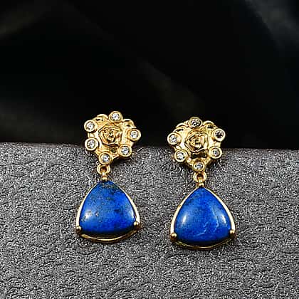 EverTrue Lapis Lagoon & White Zircon Solitaire Stud Push Post Earring in Yellow Gold Tone 9.38 Ct.