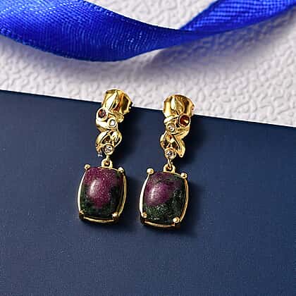 EverTrue Natural Ruby Zoisite, Red Garnet & White Zircon Solitaire Stud Push Post Earring in Yellow Gold Plated 9.77 Ct.