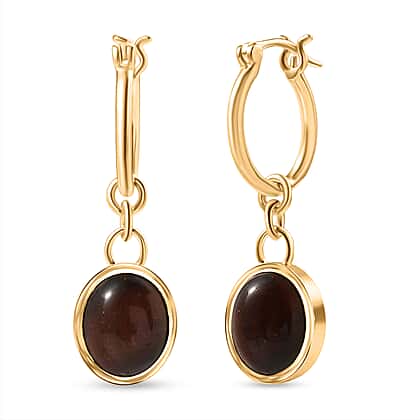 EverTrue Red Tiger Eye Dangling Earring with Clasp in Yellow Gold Plated 10.02 Ct.