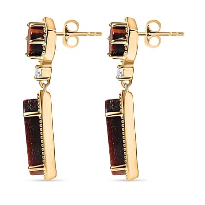 EverTrue Red Tiger Eye & White Topaz Dangling Earring with Push Back in Yellow Gold Plated 16.25 Ct.