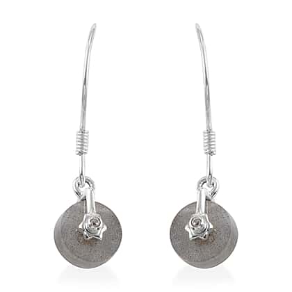 Fire Labradorite and Natural Cambodian Zircon Hook Earrings in Sterling Silver 4.06 Ct.
