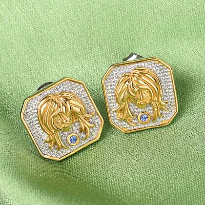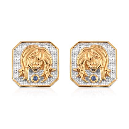 Fissure Filled Blue Sapphire Virgo Zodiac Earrings (with Push Back) in Platinum and Yellow Gold Overlay Sterling Silver