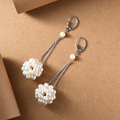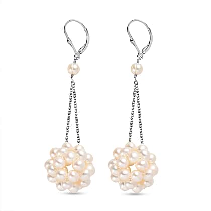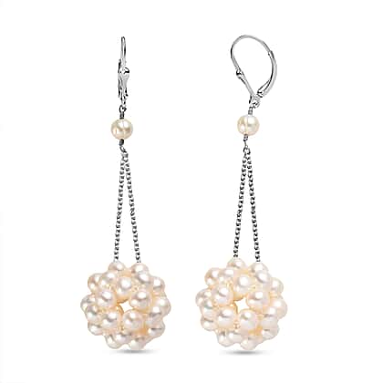 Fresh Water Pearl Earring with Lever Back in Rhodium Overlay Sterling Silver 35.00 Ct.