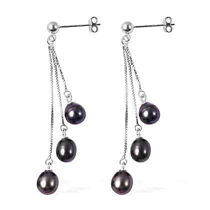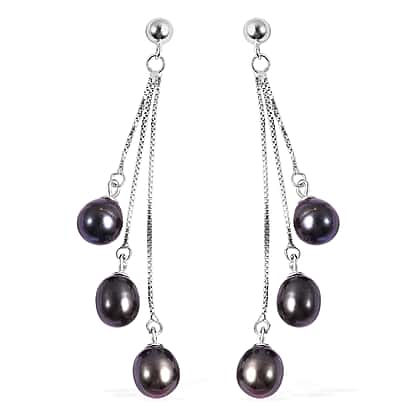 Freshwater Peacock Pearl Dangle Earrings in Sterling Silver