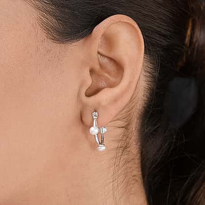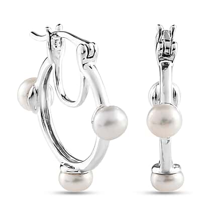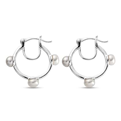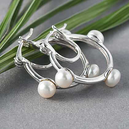 Freshwater Pearl Hoop Earrings (with Clasp) in Sterling Silver