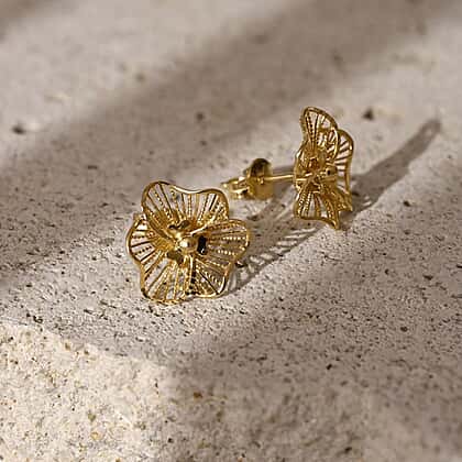 Inspired by the floral theme, these 9K yellow gold floral earrings are a delicate piece that brings nature-inspired charm to your jewellery box. Designed in the shape of an openwork flower, it captures light beautifully with its intricate petal detailing and airy design. The warm glow of 9K yellow gold ensures a radiant finish, while being hypoallergenic, tarnish-resistant and suitable for sensitive skin. Its stud style makes it effortless for everyday wear, while the floral motif adds a feminine touch that feels unique. Perfect as a gift or self-treat, these earrings are highly valued for their craftsmanship, durability and symbolic nod to growth and beauty.