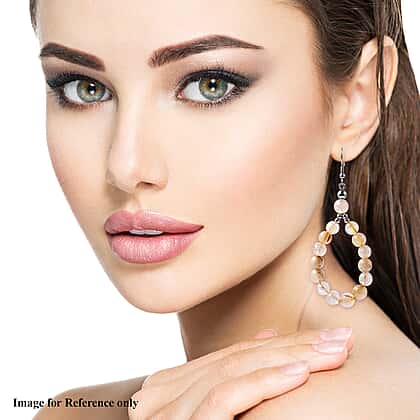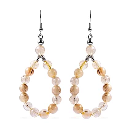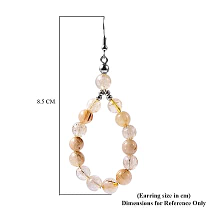 Golden Rutilated Quartz Beads Hook Earrings (with Push Back) in Silver Tone 95.50 Ct.