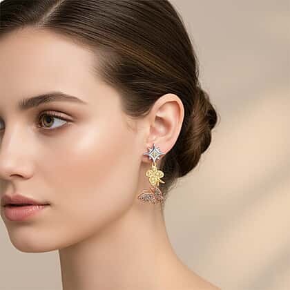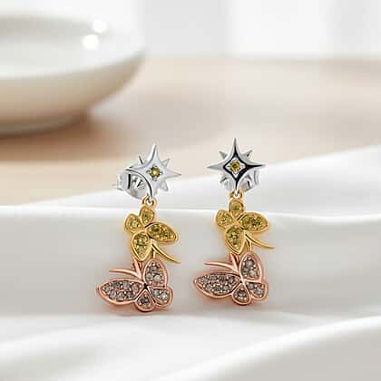 GP - Italian Garden Collection Champagne Diamond (SI-CP), Kanchanaburi Blue Sapphire & Yellow Diamond Earring with Push Back in Tri Colour Plated Sterling Silver 0.31 Ct.