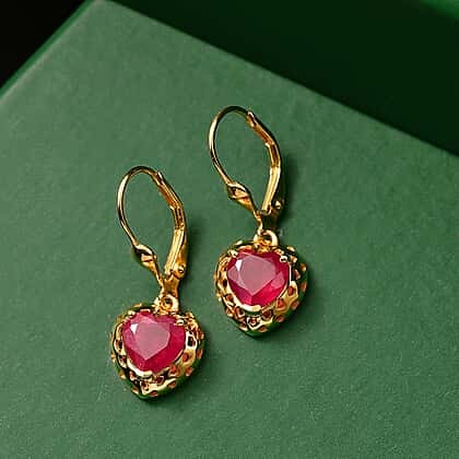 GP African Ruby & Blue Sapphire Heart Earring with Lever Back in 18K Vermeil Yellow Gold Plated Sterling Silver 3.52 Ct.