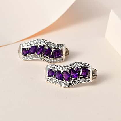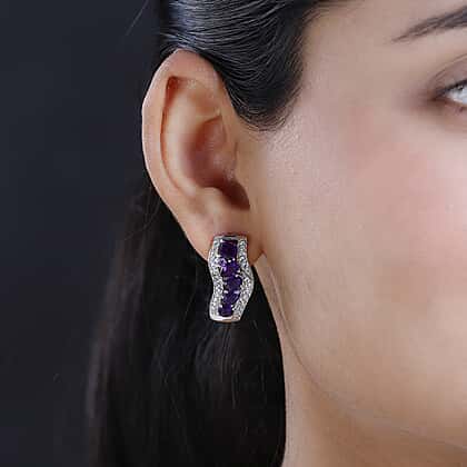 GP Art Deco Collection - Amethyst & Natural Zircon Earrings in Platinum Overlay Sterling Silver 5.32 Ct.