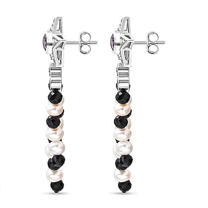 GP Celestial Collection - Starry Night Rose De France Amethyst, Pearl, Black Spinel and Zircon Earrings With Push Back in Rhodium Overlay Sterling Silver