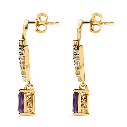 GP Celestial Dream Collection - Amethyst, Skyblue Topaz & Natural Zircon Dangle Earrings in 18K Vermeil Yellow Gold Plated Sterling Silver 4.64 Ct.