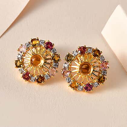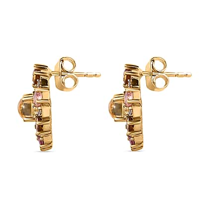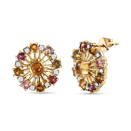 GP Celestial Dream Collection - Citrine, Natural Zircon & Multi-Tourmaline Cluster Stud Earrings in 18K Vermeil YG Plated Sterling Silver Silver Wt. 5.55 Gms